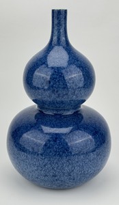 17 - CHINESE POWDER BLUE PORCELAIN DOUBLE GOURD VASE Chinese powder blue glazed porcelain vase of double gourd form. Measures 13" height x 8 3/4" x 8 3/4".