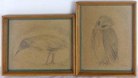 18 - 2pc MORRIS GRAVES 'BIRDS' GRAPHITE ON PAPER Two graphite drawings on paper depicting birds attributed to Morris Cole Graves (1910-2001). Believed to depict an owl and crow. Each signed lower right. Each sheet measures 9 1/4" x 7 3/4". Each frame measures 10 3/4" x 8 3/4".