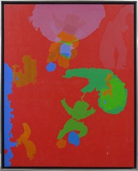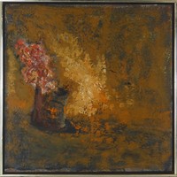 1 - GANDY BRODIE 'FLOWERS IN A CAN' OIL ON BOARD Gandy Brodie (American, 1925-1975) oil painting on masonite depicting flowers in a can. No apparent signature. Holds Zabriskie Gallery, NY label to verso. Titled 'Gladiola in a Rusted Can' and dated 1966. Painting measures 24" x 24". Frame measures 25 1/8" x 25 1/8".
