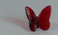 44 - BACCART RUBY RED CRYSTAL BUTTERFLY Baccarat ruby red crystal butterfly paperweight. Marked to underside. Measures 3 1/4" x 2 3/4" x 2 1/2" h.