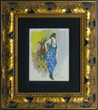 6 - ITZCHAK TARKAY 'DOREEN STANDING' ACRYLIC ON CANVAS Itzchak Tarkay acrylic painting on canvas. Titled 'Doreen Standing'. Signed lower right. Viewable measures 8" x 6: Frame measures 17" x 15" x 1 1/2".