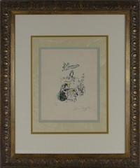 7 - MARC CHAGALL 'KING DAVID' SIGNED LITHOGRAPH Marc Chagall lithograph on Japon. Titled 'King David'. Pencil signed lower right. Numbered 29/40 lower left. Viewable measures 10" x 8". Frame measures 23 3/4" x 19 3/4".