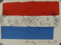 9 - ANDY WARHOL 'ELECTION NIGHT' SIGNED INVITATION Andy Warhol color offset lithograph depicting Ronald Reagan and Walter Mondale. Titled 'Election Night, 1984'. Hand signed and dated 1984 to edge. Sheet measures 12" x 9".