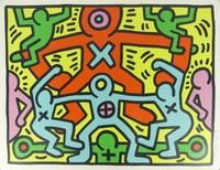 14 - KEITH HARING 'UNTITLED' SCREENPRINT Keith Haring 'Untitled' screenprint depicting figures in motion. Hand signed, dated March 1988 and numbered 19/40 (?) in red pencil lower right. Sheet measures 31 1/2" x 23 1/2".