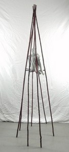 15 - AURORA CANERO 'REFUGIO II' BRONZE SCULPTURE Aurora Canero Lopez (Spanish, born 1940) 'Refugio II' patinated bronze sculpture depicting a seated nude female figure elevated on seven elongated stick-like rods arranged in a wigwam formation. Signed, numbered 3/6 and holds foundry mark to figure's right side. Measures 83 1/2" x 26" x 25". Includes certificate or authenticity from Elaine Baker Gallery.