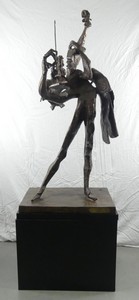 16 - NATHANIEL KAZ 'PAGANINI' BRONZE SCULPTURE Nathaniel Kaz (American, 1917-2010) bronze sculpture depicing an abstract violinist. Titled 'Paganini'. Signed and dated 1963, numbered 3/10 and holds Luigi Tomassi foundry mark to top of bronze base. Bronze measures 52" x 27" x 20". Includes swivel pedestal measuring 27" x 23" x 17".