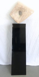 23 - MARGARET HODNETT 'EYE' ROSE MARBLE SCULPTURE Margaret Moss Hodnett (American, 20th C) carved rose marble sculpture in the form of an abstract eye. Marble measures 20" length x 16 1/2" height x 4 3/4" depth. Measures 20" height inclusive of base. Includes pedestal measuring 41 1/2" x 13" x 13"
