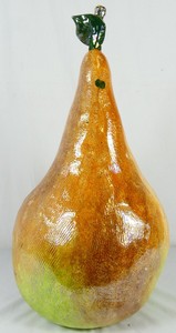 24 - MARY LUNDIN KUDO GLAZED CERAMIC PEAR SCULPTURE Margaret Moss Hodnett (American, 20th C) carved rose marble sculpture in the form of an abstract eye. Marble measures 20" length x 16 1/2" height x 4 3/4" depth. Measures 20" height inclusive of base.