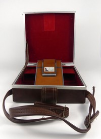 28 - ANDY WARHOL ESTATE POLAROID SX70 CAMERA Andy Warhol Estate Polaroid SX70 camera in case. Holds The Andy Warhol Collection label to camera. Case measures 9 1/4" x 9 1/4" x 3 1/2".