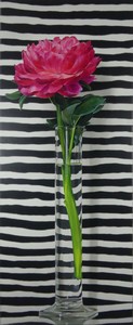 2 - BEN SCHONZEIT 'CERISE GRADUATE TIE' ACRYLIC Ben Schonzeit (American, b. 1942) acrylic painting on linen. Titled 'Cerise Graduate Tie (Peonie)'. Signed, dated 2003 and titled to verso. Signed and titled (again) to canvas overlap-verso. Includes certificate of authenticity. Measures 72" x 27 1/2" x 1".