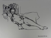 34 - TOM WESSELMANN 'MONICA NUDE WITH MATISSE' DRAWING After Tom Wesselmann 'Monica Nude with Matisse' marker drawing on paper. Signed lower right. Sheet measures 32 3/8" x 24".