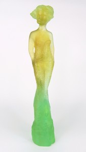 11 - SYLVIE LASSEIGNE FOR DAUM, 'APRES L'AMOUR' GLASS Sylvie Mangaud Lasseigne for Daum France pate-de-verre glass sculpture depicting a nude female. Marked Daum France. Holds artist's initials and numbered 148/375. Include certificate of authenticity and original box/crate. Sculpture measures 26" x 9" x 8". Box measures 34" x 17" x 13".