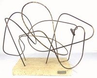 6 - ENIO IOMMI 'CONTINUIDAD' IRON SCULPTURE Enio Iommi (Argentine, 1926-2013) iron freeform sculpture on a travertine stone base. Marked Iommi, dated 1949 and titled 'Continuidad' to plaque to front of base. Measures 26" x 21 1/2" x 15".
