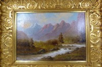 10a - CHARLES HENRY HARMON OIL PAINTING ON CANVAS Charles Henry Harmon (American,1859-1936) oil painting on canvas depicting a landscape of a mountain scene. Measures 14" (36cm) width by 10" (25cm) height plus 3"(8cm) frame.