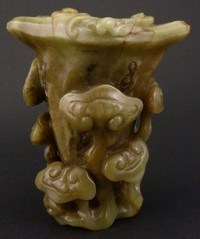 12 - CHINESE YELLOW JADE LINGZHI VASE CARVING Chinese yellow jade carved Lingzhi vase. Measures 3 1/2" (8.89cm) height by 3" (7.62cm) width by 2 1/2" (6.35cm) depth, total weight 286.3g.