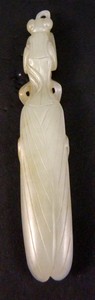 14 - CHINESE WHITE JADE MANTIS CARVING PENDANT Chinese white jade carved mantis. Measures 4" (10.16cm) length by 3/4" (1.90cm) width, total weight 24g.