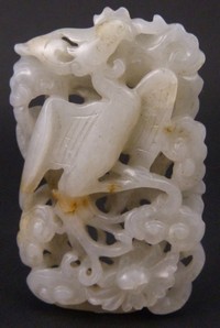 27 - CHINESE WHITE JADE PHOENIX & PEONY PENDANT Chinese white jade carved phoenix & peony pendant. Measures 3" (7.62cm) height by 1 3/4" (4.44cm) width, total weight 48.8g.