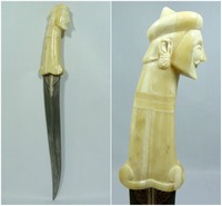 31 - MUGHAL KING FIGURAL CARVED CAMEL BONE DAGGER Mughal king figural carved camel bone dagger. Mesaures 17" (17.78cm) total length & handle measures approx 6" (15.24cm) length, total weight 432.8g.