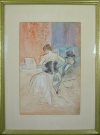 3 - JEAN-LOUIS FORAIN PASTEL ON PAPER WOMAN IN CORSET Jean-Louis Forain (1852-1931) pastel on paper after Henri de Toulouse-Lautrec's "Woman in Corset" (Femme en corset). Both Forain and Lautrec studied under Edgar Degas, Lautrec admired and followed Forain's work throughout their years. Christie's New York provided an estimate of $14,000 to $18,000 USD for this work on Dec 7th, 2010. Please see attached image. Pastel measures 14" (35.56cm) height by 9" (22.86cm) width plus 3" (7.62cm) frame.