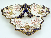 40a - ROYAL CROWN DERBY IMARI THREE PART RELISH PLATTER Royal Crown Derby Imari pattern three part relish serving porcelain platter . Measures 14" (36cm) length by 12" (30cm) width, total weight 823g.