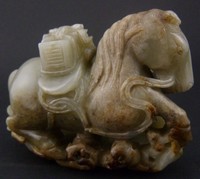 11 - LARGE CHINESE WHITE JADE HORSE GROUP CARVING Large rare Chinese white jade carved horse group. Measures 3" (7.62cm) height by 5" (12.7cm) width by 6"(15.24cm) length, total weight 1564.4g.