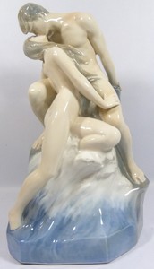 47 - ROYAL COPENHAGEN "WAVE & ROCK" #1132 SCULPTURE Royal Copenhagen "Wave and Rock" #1132 porcelain figure. Measures 18" (46cm) height by 12" (30cm) width.