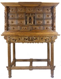 8 - ANTIQUE ITALIAN CARVED WALNUT MULTI DRAWER CABINET 18th to 19th Century Italian Bambocci Florentine Renaissance carved walnut cabinet with multiple drawers. Measures 56" (142.24cm) height by 44" (111. 76cm) width by 17"(43.18cm) depth.