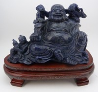 11 - LARGE CHINESE LAPIS CARVING OF BUDDHA w CHILDREN Large Chinese lapis sculpture of Buddha with children. Measures 7" (18cm) height by 10" (25cm) width plus 3" (8cm) base.