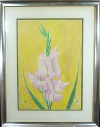 14 - JOSEPH STELLA PASTEL ON PAPER OF STILL LIFE Joseph Stella (American 1877-1946) pastel floral still life drawing on paper. Signed in pencil to lower right. Measures 14" (36cm) height by 10" (25cm) width plus 3" (8cm) mat & frame.