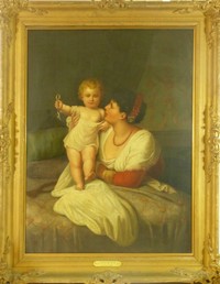 15 - GIRROTI "MOTHER & CHILD" 19th CENTURY OIL PAINTING 1860 oil painting by Girroti titled "Mother and Child" . Measures 38" (97cm) height by 29" (73cm) plus 5" (13cm) frame. This painting has been relined.