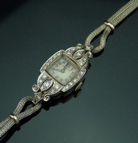 21 - HAMILTON LADIES PLATNIUM DIAMOND WRIST WATCH Hamilton ladies platnium and diamond wrist watch. Measures 6" (15cm) length, face measures 1/2" by 1 1/4", total weight 18g.