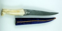 28 - MUGHAL ANIMAL CARVED BONE DAGGER w SHEATH Mughal animal carved bone dagger with sheath. Measures 12" (30cm) length, total weight 176g.