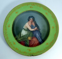 29 - ROYAL VIENNA ANTIQUE HAND PAINTED PORCELAIN PLATE Antique Royal Vienna Austrian hand painted portrait plate depicting a mother holding her child. Signed to back with makers hallmark. Measures 9" (23cm) diameter, total weight 444g.