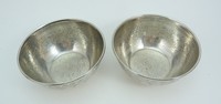 2 - 2 VINTAGE EGYPTIAN 900 SILVER ARABESQUE BOWLS 2 Vintage hand crafted Egyptian 900 silver Arabesque motif bowls. Marked to bottom. Each measures 4" (10cm) diameter by 2" (5cm) height. Total weight 223g (7.2ozt).