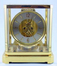 30 - JAEGER LeCOULTRE ATMOS BRASS MANTEL CLOCK Jaeger LeCoultre Atmos clock. Measures 9" (23cm) height by 7" (18cm) width, total weight 5365g.