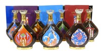 36 - SEVEN ERTE COURVOISIER COGNAC COLLECTION BOTTLES Collection of Seven Erte Cognac Bottles, unopened. Each with different labels. 10" Tall, Each Bottle Weighs 1600gms. Collection Dates to 1988. Erte finished designing the collection right before his death in 1990 at the age of 97. Released 1 a Year, Limited to 12,000. Local pickup only.