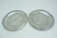 3 - 2 VINTAGE EGYPTIAN 900 SILVER ARABESQUE PLATES 2 Vintage hand crafted Egyptian 900 silver Arabesque motif plates. Holds mark to bottom. Each measures 7" (18cm) diameter, total weight 314g (10ozt).