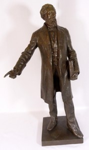 41 - ALEXANDRE FALGUIERE BRONZE OF ARGENTINE SCHOLAR A cast bronze of Dalmacio Vélez Sársfield (1800-1875) who was an Argentine lawyer and politician who wrote the Argentine Civil Code approved in 1869, the vast majority of which remains in use today. He is depicted holding a copy of the bound book, entitled CODIGO CIVIL DE LA REPUB ARGENTINA on the spine. The square base signed in the bronze on two sides: 1887 A. FALGUIÈRE and FONDU PAR MAURICE DENONVILLIERS. After Alexandre Falguière. Measures 32" (81cm) height by 15" (38cm) width.