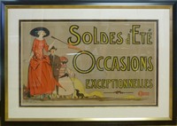 47 - MARCE BJOCH "SOLDED D'ETE' OCCASIONS" POSTER Marce Bjoch "Soldes d'ete' occasions, exceptionnelles" advertisement poster. Measures 37" (94cm) height by 23" (58cm) width plus 6" (15cm) mat and frame.