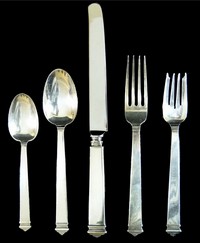 13 - 30pc TIFFANY & CO HAMPTON STERLING SILVER FLATWARE 30 piece Tiffany & Co "Hampton" sterling silver flatware set including (6) tablespoons 7" (18cm) length, (6) teaspoons 6" (15cm) length, (6) salad forks 7" (18cm) length, (6) dinner forks 7 1/2" (19cm) length. (6) knives with Tiffany & Co blades 10" (25cm) length. Total sterling weight approx 53.2ozt (knives calculated as 3ozt).