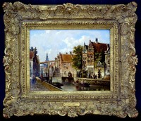 21 - JOHANNES F. SPOHLER OIL PAINTING ON BOARD Johannes Franciscus Spohler (1853-1894) oil painting on board titled "Canal in Amsterdam". Signed lower right. Purchased from Willow Gallery in London. Painting measures approx 8" (20cm) width by 6" (15cm) height plus 2 1/2" (6cm) ornate wood frame.
