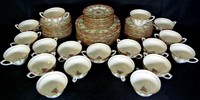 28 - 70pc ROYAL WORCESTER "CRADLEY" CHINA SET 70 pieces Royal Worcester "Cradley" china set, a reproduction of early Worcester. This set includes (11) tea cup saucers, (12) Tea cups, (12) Dessert plates, (12) Soup saucers, (11) Dinner plates, and (12) Soup bowls.