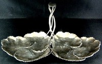 35 - REED & BARTON 1940 STERLING SILVER LEAF TRAY Reed & Barton x103 sterling silver tray sculpted in the form of leaves with an intertwined handle made up of leaf stems connecting to the two conjoined trays made up of three leaves each. Circa 1940's, Measures 13 1/2" (34cm) length by 6 1/2" (16cm) height. Total weight 13.8ozt.