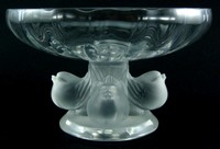 44 - LALIQUE "NOGENT" CRYSTAL BIRD COMPOTE Lalique France "Nogent" clear & frosted crystal bird compote. Measures 5 1/2" (14cm) width by 3 1/2" (9cm) height, total weight 569g.