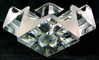 50 - DAUM FRANCE GEOMETRIC CRYSTAL SCULPTURE Daum France crystal geometric sculpture. Signed "Daum France" to bottom. Measures approx 3" (8cm) height by 7 3/4" (19cm) width, total weight 2131g.