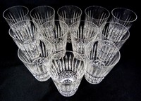 5 - 12pc WATERFORD TRAMORE CUT CRYSTAL WATER TUMBLERS 12 pieces Waterford Tramore pattern cut crystal water tumblers. Marked to bottom. Each measures 5" (13cm) height and weight 365g each.
