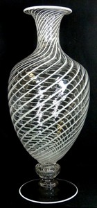 6 - MURANO VENINI LARGE ART GLASS VASE Murano Venini large art glass vase with a white lined swirl decorated throughout the vase. Marked to bottom. Measures 21" (53cm) height, total weight 3342g.