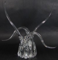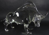 27 - LICIO ZANETTI MURANO ART GLASS BULL SCULPTURE Large Licio Zanetti Murano art glass sculpture of a bull. Signed to bottom. Measures 12 1/2" (32cm) length x 8 1/2" (21cm) height.