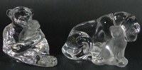 29 - 2pc SAINT LOUIS CRYSTAL MONKEY & LIONESS w YOUNG 2 pieces of Saint Louis crystal. One depicts a monkey holding a frosted baby monkey. Other depicts a lioness with her frosted cub. Lions measure 5" length.