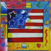 38 - PETER MAX AMERICAN FLAG ACRYLIC ON CANVAS Acrylic painting on canvas depicting the American flag attributed to Peter Max (German/American, b1937). Signed lower left. Measures 30" (76cm) x 30" (76cm).